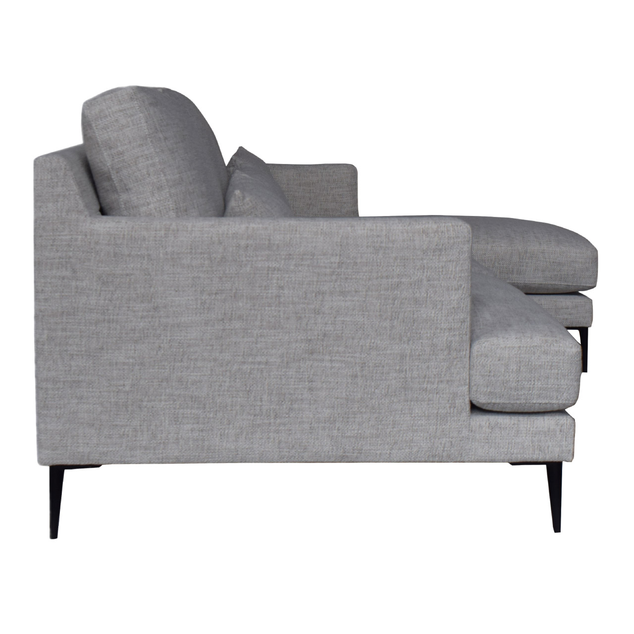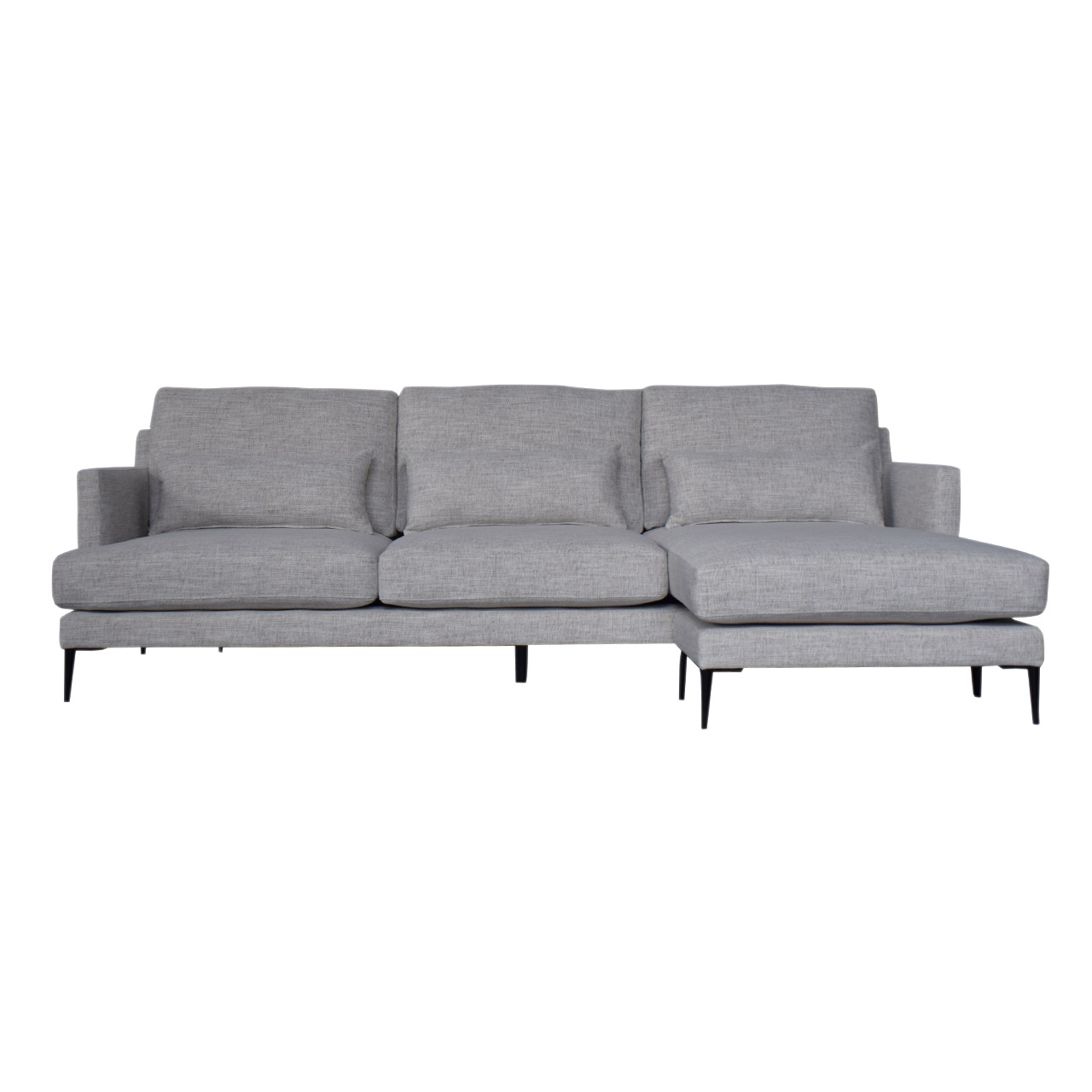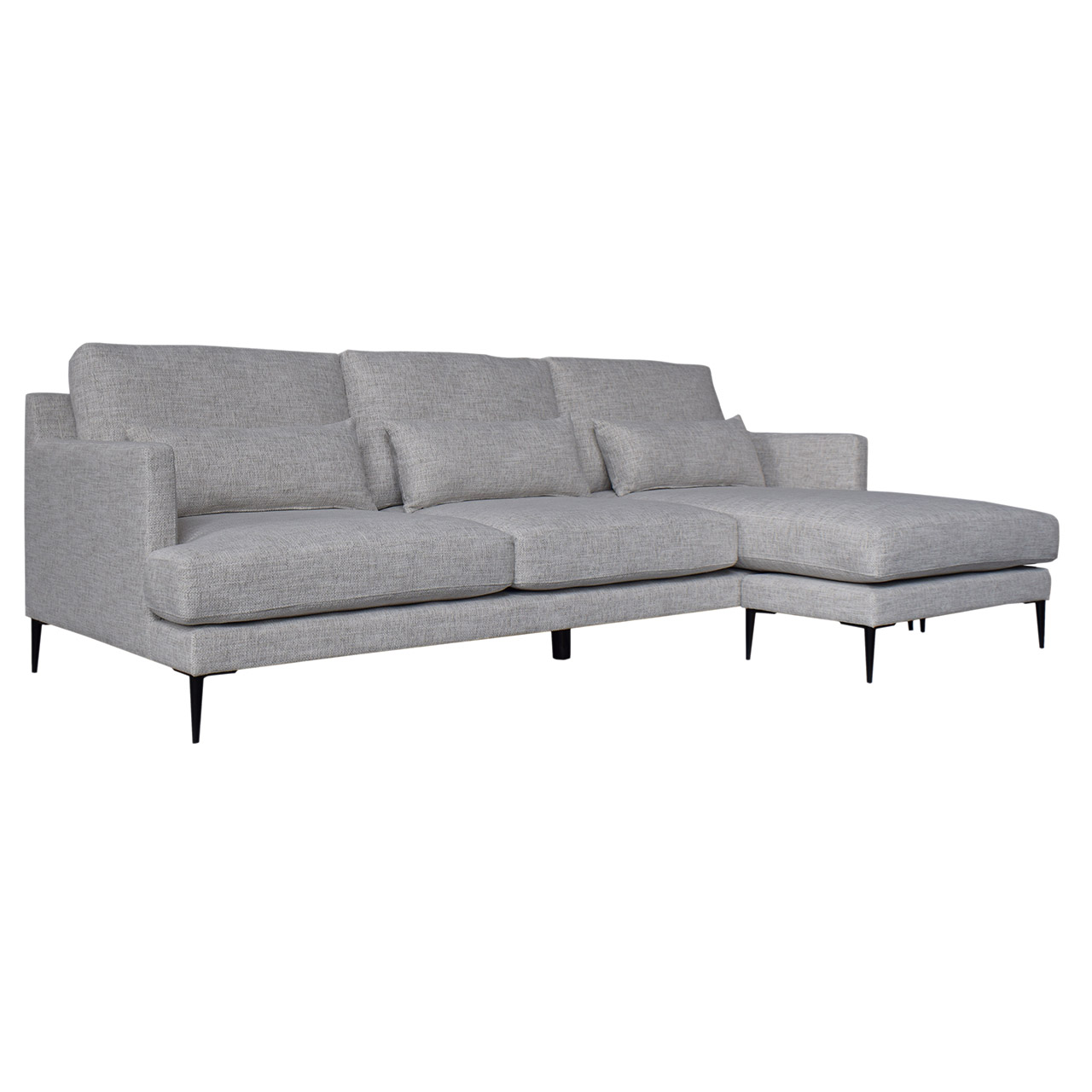 Flexibility, comfort and style. The Abbott Sectional has an interchangeable ottoman that can flip from side to side. Secured with a sturdy alligator clip this sectional offers options and ample seating. Available in a Warm Grey or Dark Grey Marl.