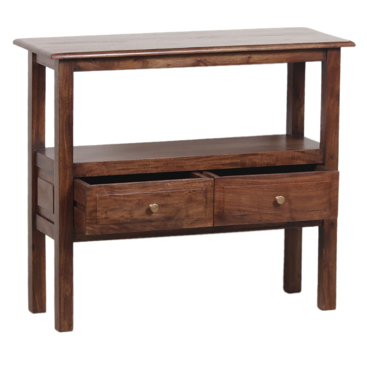 The Bilbao Console is made from Acacia wood with a Washed Walnut finish. It slips seamlessly into any space offering small scale storage and classic style.