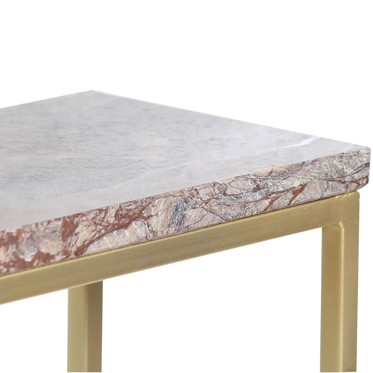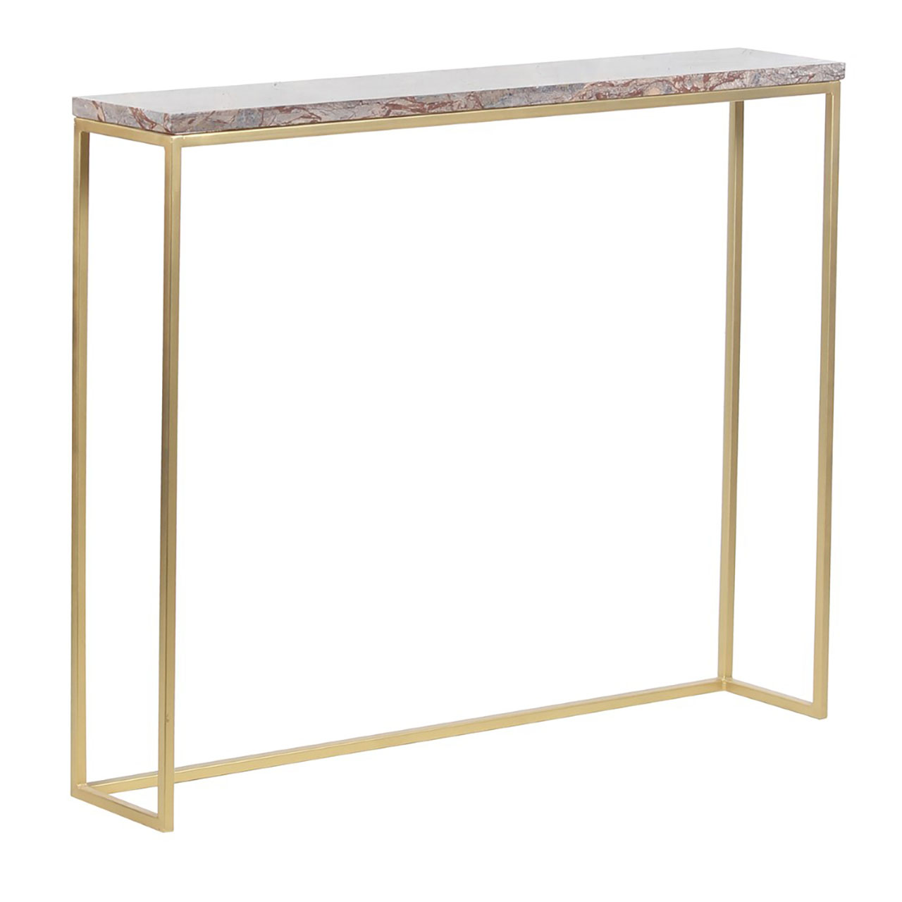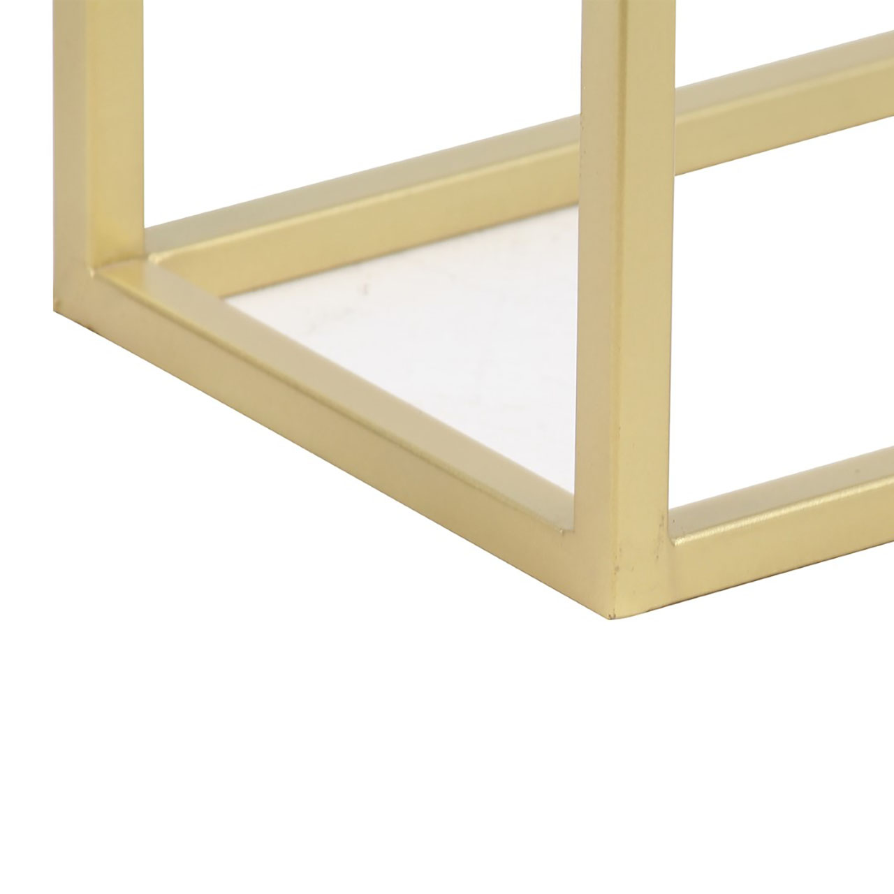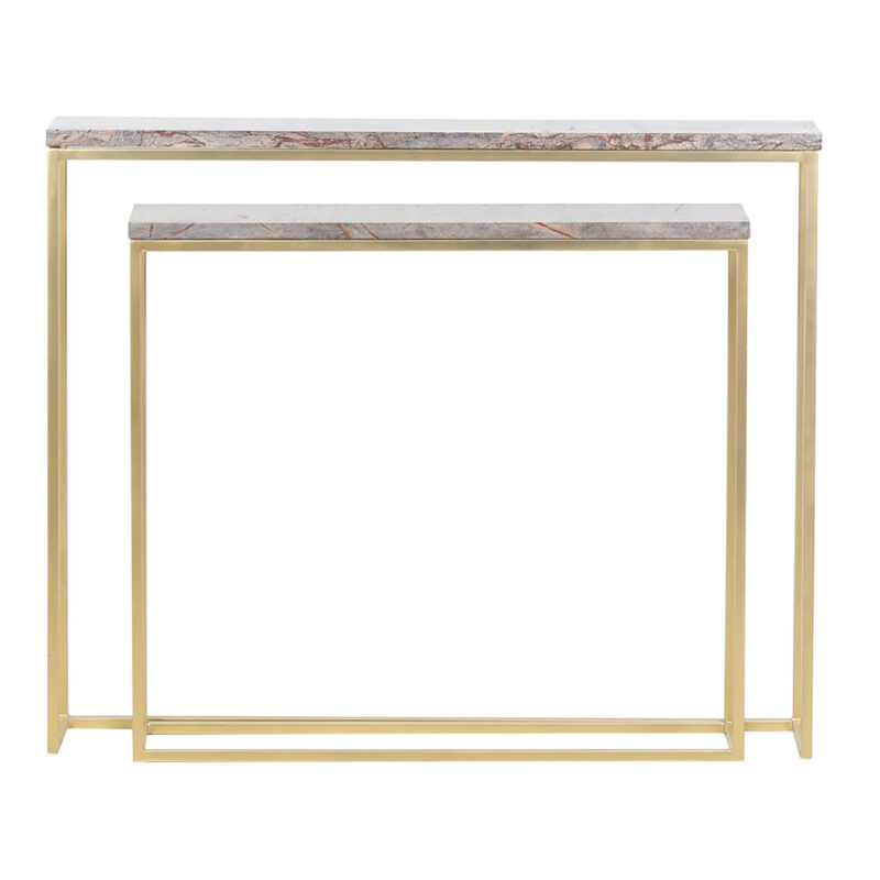 Luxe living. This pair of narrow console tables can be used together to create a tiered effect or on their own. Made with an Iron base in a gold finish, topped with marble, they are sure to stun in any space.