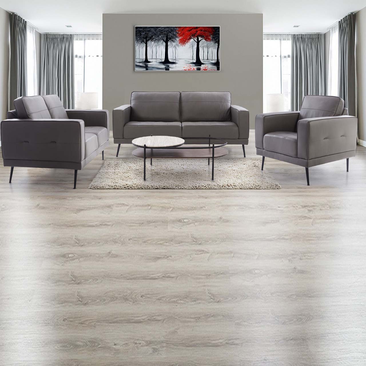 The Eugene Leather Large Loveseat in Grey or Black combines modern design with ample seating space, making it a perfect addition to your living room.