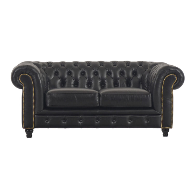 Jasmi Chesterfield Loveseat Leather Fountain Black