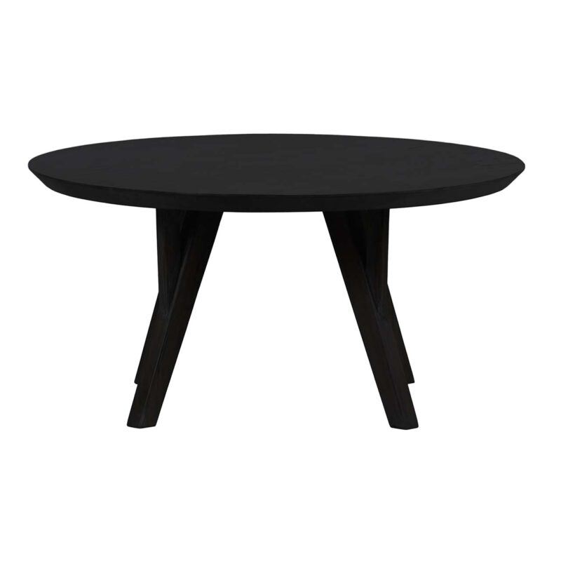 Mid Century Acacia Wood Round Dining Table, Black, Salvage or Washed Walnut