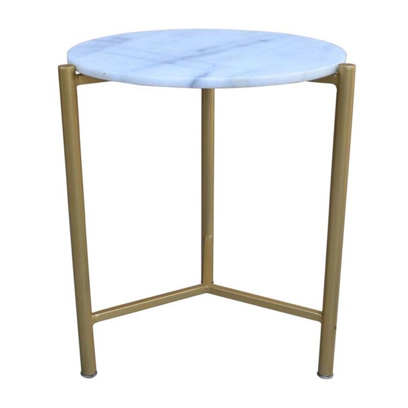 A modern marble side table to compliment the Moscow Coffee table. Crafted with an iron base in a gold finish with a Banswara Marble top.