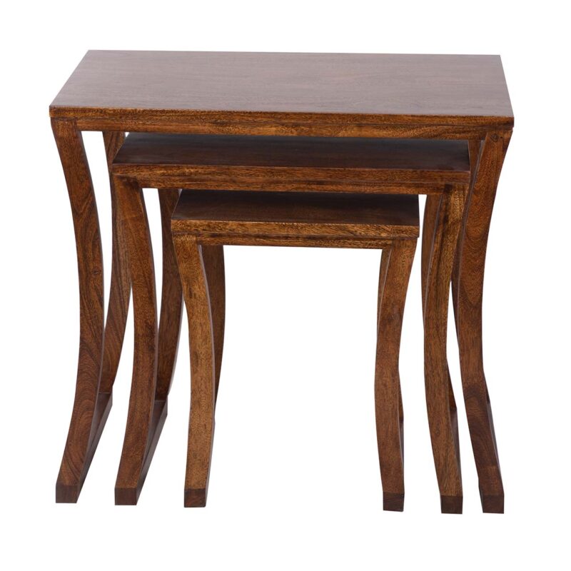 A practical set of nesting tables crafted with Acacia wood available in a Chestnut or Slate Grey finish.